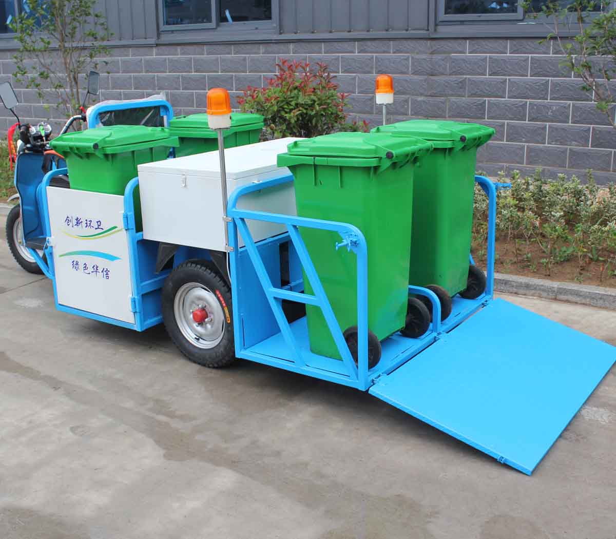 3、經(jīng)濟(jì)適用,可同時裝載4只240L標(biāo)準(zhǔn)垃圾桶,裝卸方便,集垃圾收集、存儲、清運于一體,有效提高作業(yè)效率;